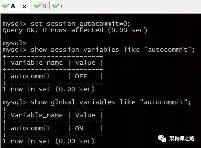画外音:楼主使用的是MySQL5.6,官方客户端mysql,模拟并发终端用的SecureCRT。
