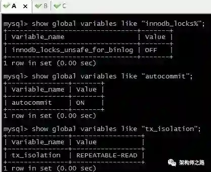 要测试InnoDB的锁互斥,以及死锁,有几个配置务必要提前确认: