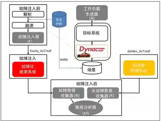 图 1 展示了基于故障注入仿真的自动驾驶汽车功能安全分析方法,该方法可作为评估早期设计阶段某个架构安全性的补充手段。通过分析仿真数据,可以在数个较优的安全概念之间加以权衡和选择。