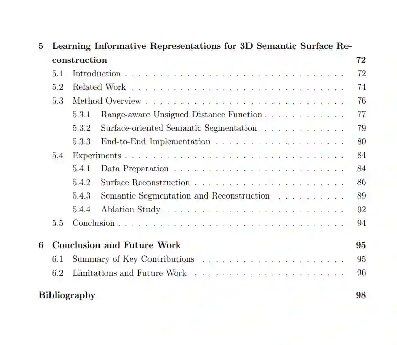 总体而言,本文开发了一系列新颖的深度神经框架,以推动场景表示的机器学习领域向能够完全感知现实世界3D环境的人工智能发展。