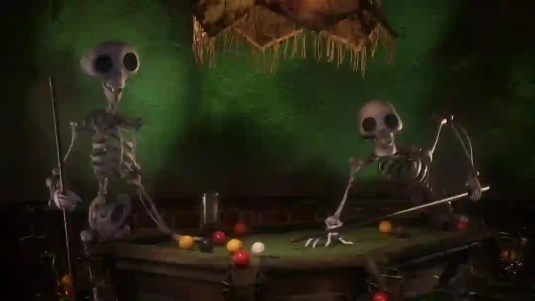 《僵尸新娘》里,死后的骷髅在酒馆里聚会,聊着生前的囧事