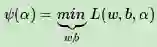 现在我们来看将w替换为α的表达式以后的优化函数ψ(α)的表达式: