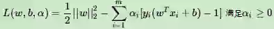 由于目标函数12||w||22是凸函数,同时约束条件不等式是仿射的,根据凸优化理论,我们可以通过拉格朗日函数将我们的优化目标转化为无约束的优化函数,这和(机器学习(13)之最大熵模型详解)中讲到了目标函数的优化方法一样。具体的,优化函数转化为: