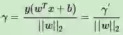 在分离超平面固定为wTx+b=0的时候,|wTx+b|表示点x到超平面的距离。通过观察wTx+b和y是否同号,我们判断分类是否正确,这些知识我们在感知机模型里都有讲到。这里我们引入函数间隔的概念,定义函数间隔γ′为: