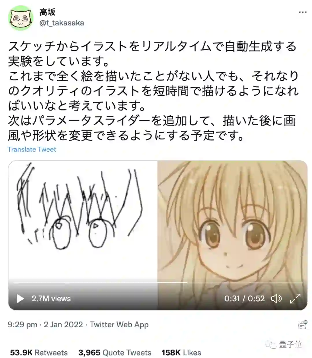 这个由日本插画网站Pixiv官方技术人员“业余”开发的AI,曾一度登顶日推趋势榜,现在的点赞数已经接近16万: