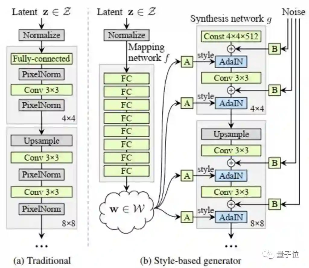 而StyleGAN则重新设计了GAN的生成器网络结构: