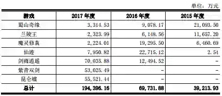 除2016年上线的《剑雨逍遥》以及2017年上线的《紫青双剑》、《昆仑墟》三款产品外,其他产品均已出现营收下滑的迹象,例如,于2013年12月上线的《蜀山奇缘》,在2015年实现营收高点约5795.58万元之后便一路下滑,至2017年,该产品实现的营收下滑至1083.21万元,在总营收中的比重也由2015年的58.18%降至2017年的1.16%。
