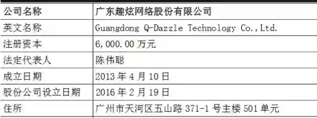 据招股书了解,趣炫网络于2013年04月10日在广州市工商行政管理局登记成立,2016年2月19日完成股改。
