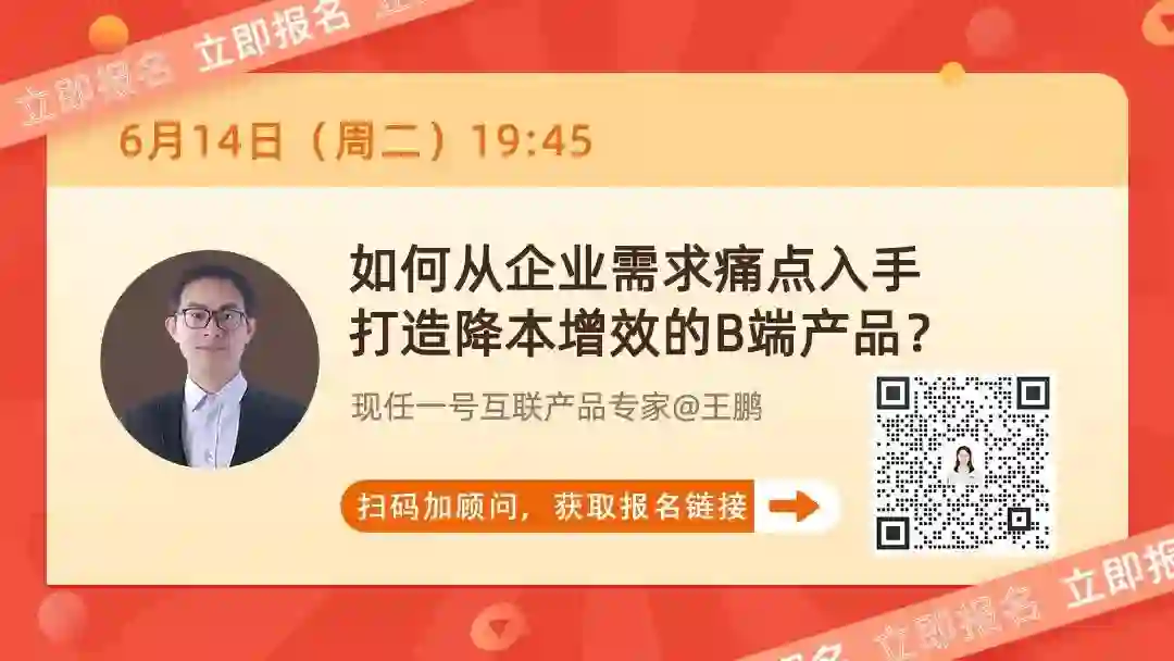6月14日(周二)晚19点45,现任一号互联产品专家@王鹏老师,结合具体案例帮你理清典型部门实现降本增效的业务思路,剖析B端产品该如何帮助企业降本增效。