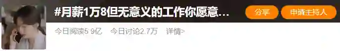 这个话题#月薪1.8W但毫无意义的工作你愿意做吗#也一度冲上微博热搜第一,当日阅读高达5.9亿。
