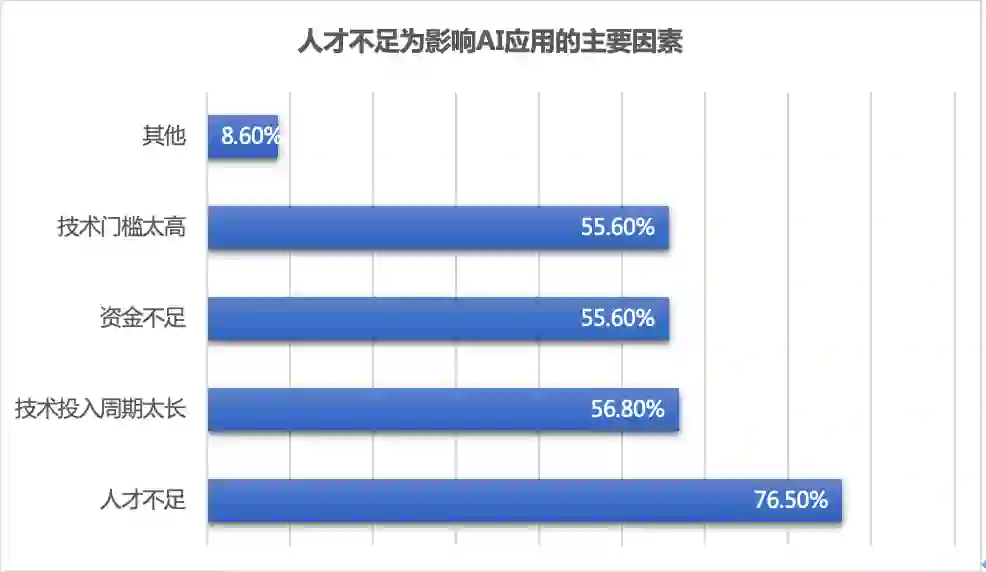 此前一份针对中部互联网内容平台的调研反馈中,提及技术人才匮乏是影响平台应用AI技术的主要因素,团队中AI技术人员不足10人的情况占到85.5%。