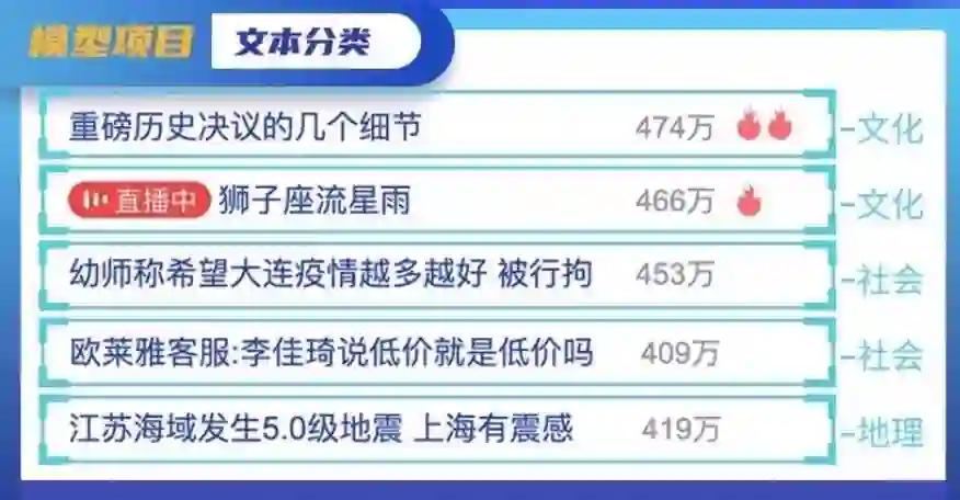 :针对网站上传信息进行分类打标更方便对新闻进行分类编辑,同时过滤掉虚假新闻确保整个平台的公信力。飞桨EasyDL利用NLP技术对新闻主体部分进行内容含义的辨识理解,实现内容的精准匹配和个性化定制。同时节约了原本近20人的新闻标签小组,虚假新闻的误判率降低了20%。