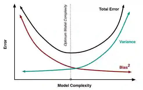 类似地,我们希望较低的 variance 来避免构建一个过于复杂的模型。这样的模型几乎能够完美的适应训练集中的所有数据点。然而,训练数据通常都包含噪声,而且它仅仅是更大的数据中的一个小样本。过于复杂的模型能够捕获这种噪声。当在样本外的数据上测试的时候,性能通常会很差。这是因为模型在样本训练数据上学习得太极致了。它对一些东西特别了解,但是对于其它一无所知。