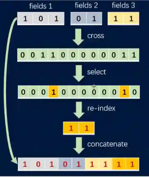 首先任意的输入特征之间通过笛卡尔积生成合成特征。该步骤后,特征数量将以二次方式增加· 接下来,从合成特征中选择最重要的特征子集(使用例如VarianceSelector和RandomForestSelector)