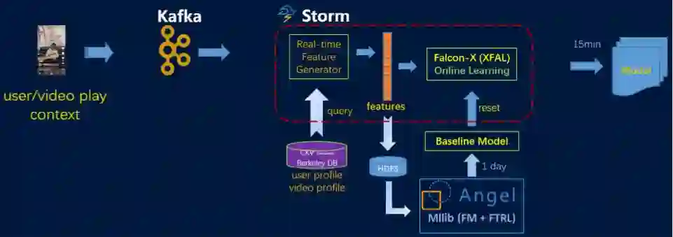 大多数在线推荐系统经常选择线性算法,例如逻辑回归作为机器学习模型,但逻辑回归需要复杂的特征工程才能实现较高的精度,这使得自动特征合成至关重要。但是,现有的自动化的高阶特征合成方法带来了维度灾难。为了解决这个问题,Angel实现了一种迭代生成高阶合成特征的方法。每次迭代由两个阶段组成: