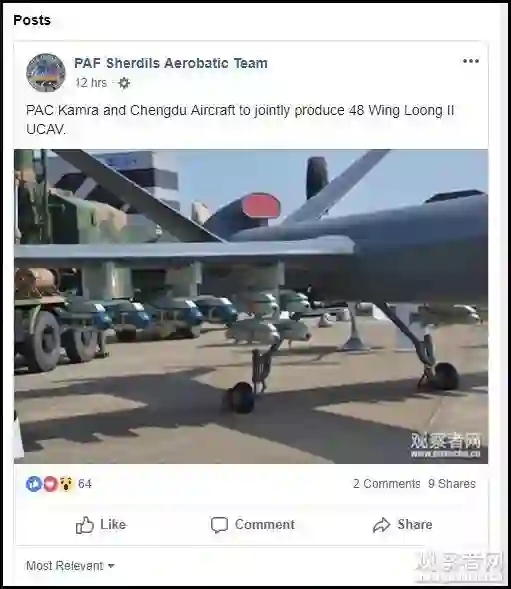 “雄狮”使用了观察者网在16年珠海航展现场拍摄的翼龙2 图源:巴基斯坦雄狮表演队官方脸书