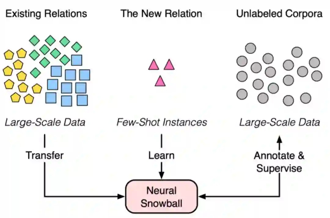 本文对清华大学孙茂松、刘知远团队完成、被 AAAI-20 录用的论文《Neural Snowball for Few-Shot Relation Learning》进行解读。目前的关系抽取,面临着开放式的关系增长问题,目前已有有监督、半监督、少次学习和自启动关系抽取,这些方法涉及到了三种类型的数据:在已有关系类型上的大规模监督数据,对于新关系的少量标注数据,以及大规模的无监督数据。高天宇等人提出Neural Snowball,充分利用了这三种数据,进行关系抽取。