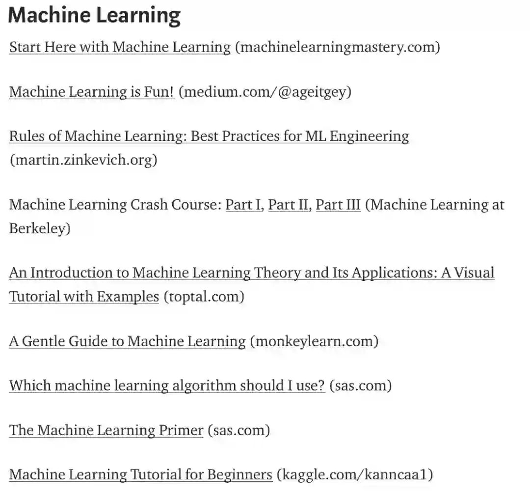 鉴于数量较多,每一部分的学习资源我们只给出了标题与来源,想了解更多大家可以从原文中进行访问。