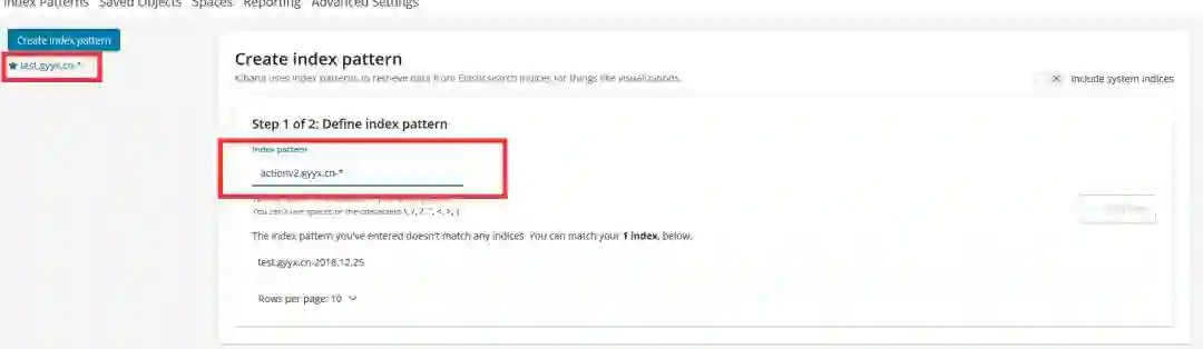 Kibana配置使用“域名-*”方式进行配置,每次新增域名,需要在此进行手工配置。