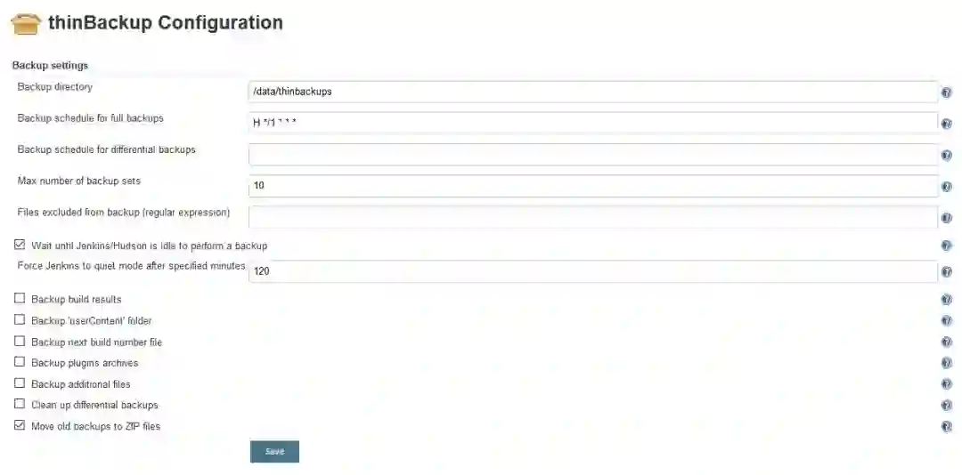 Jenins安装ThinBackup插件,配置每小时进行一次全局备份,且最多保留10份,备份后数据传至异地。