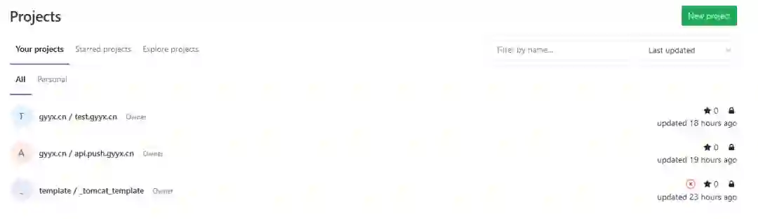 CD GitLab项目下分两个组template与各domain,template存放模板文件。例如:
