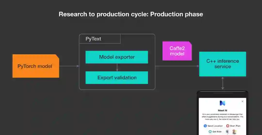 PyText 是建立在 PyTorch 上的,它可以连接 ONNX 和 Caffe2。借助 PyText,AI 研究人员和工程师可以把 PyTorch 模型转化为 ONNX,然后将其导出为 Caffe2,用于大规模生产部署。