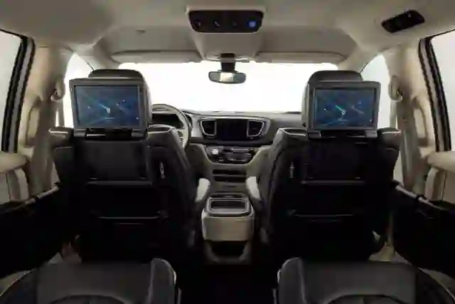 图丨在Waymo的自动驾驶汽车内,前排座椅后有显示屏幕,车顶上有四个操控按键