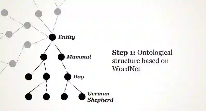 在 20 世纪 80 年代末,普林斯顿大学的心理学家 George Miller 启动了一个名为 WordNet 的项目,旨在构建英文语言层级结构的模型。它就像某种形式的字典一样,但是每个单词都会与其他相关的词相联系——而非以字母表形式呈现。例如,在 WordNet 中,单词「dog」在单词「canine」之下,而后者在「mammal」目录之下,往上往下都有更多的层级。这是为了让语言组织成为机器可读的逻辑,它已经积累了超过 155,000 个单词。