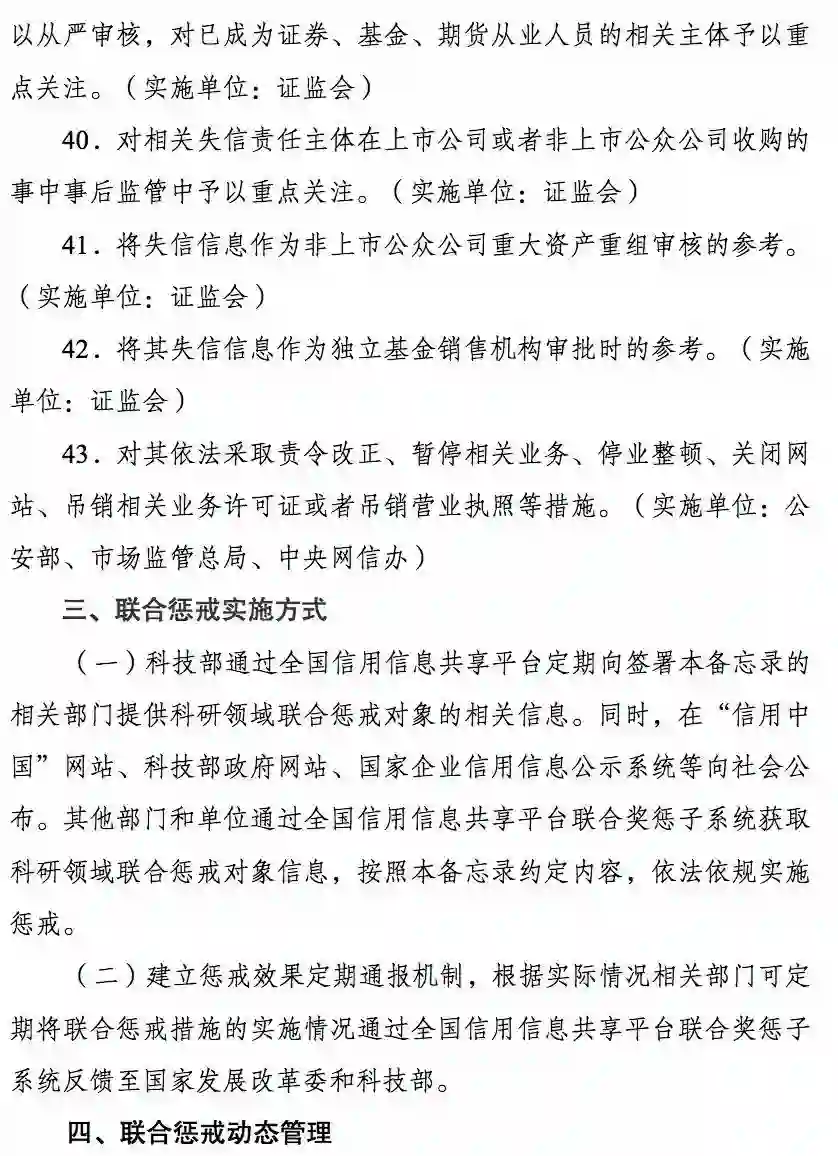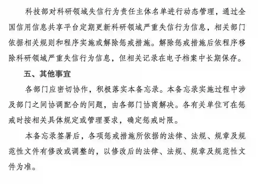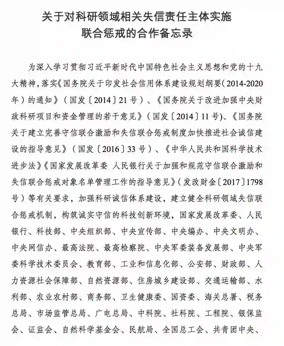 附关于对科研领域相关失信责任主体实施联合惩戒的合作备忘录全文
