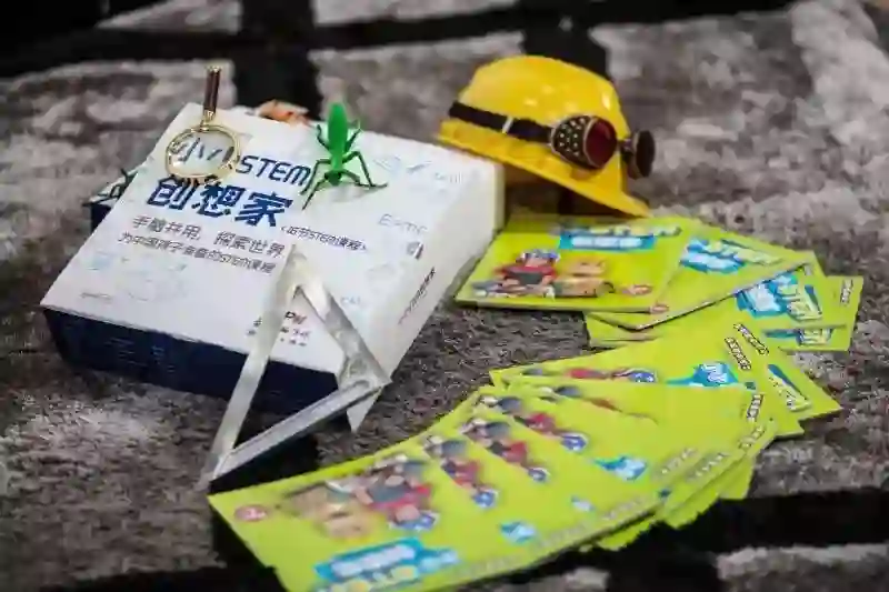 下午三点,戴昊如约走进铅笔道的采访会议室。简短的寒暄问候后,他急忙打开自己这几日出差随身携带的纸袋,里面有一本幼儿园STEM课程书籍及配套的材料包、一本初中STEM双语课程书籍。