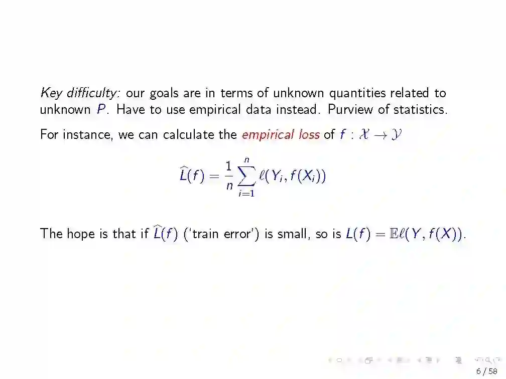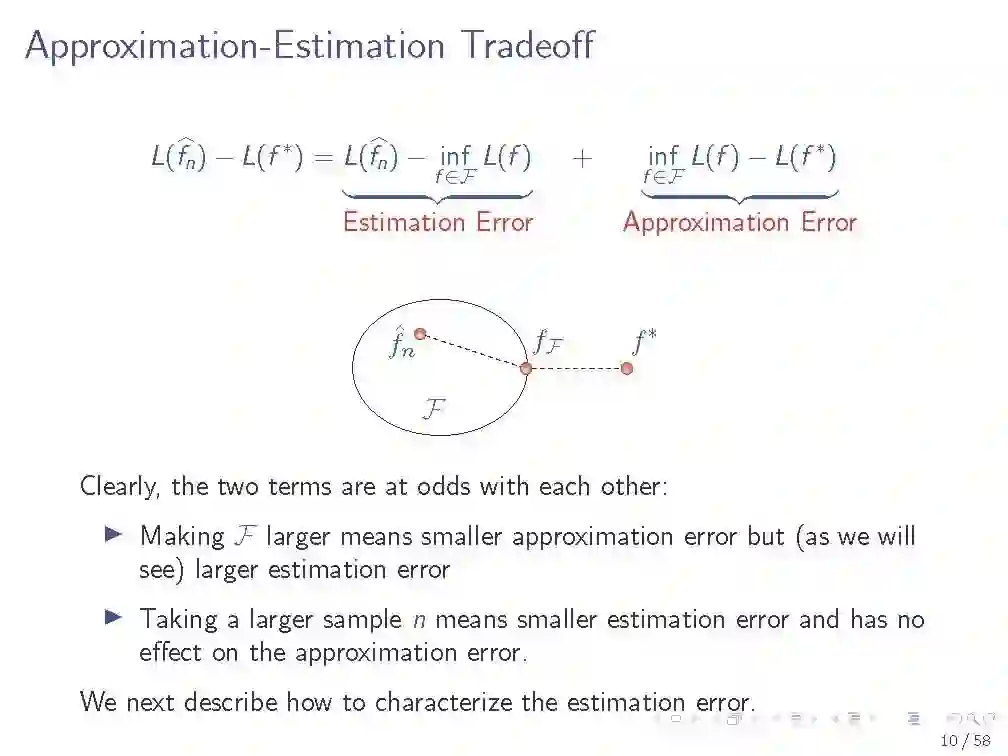 在第一个教程中,我们回顾了来自经典统计学习理论的工具,这些工具对理解深度神经网络的泛化性能很有用。我们描述大数的统一定律,以及它们如何依赖于感兴趣的函数类的复杂性。我们专注于一个特定的复杂性度量,Rademacher复杂性,以及深度ReLU网络中这种复杂性的上界。我们研究了现代神经网络的行为如何与在经典设置中发展的直觉相冲突。