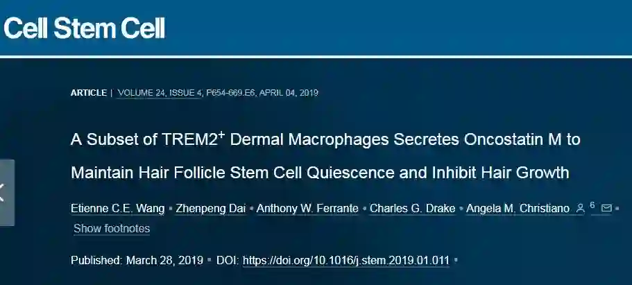 [2] A Subset of TREM2+ Dermal Macrophages Secretes Oncostatin M to Maintain Hair Follicle Stem Cell Quiescence and Inhibit Hair Growth