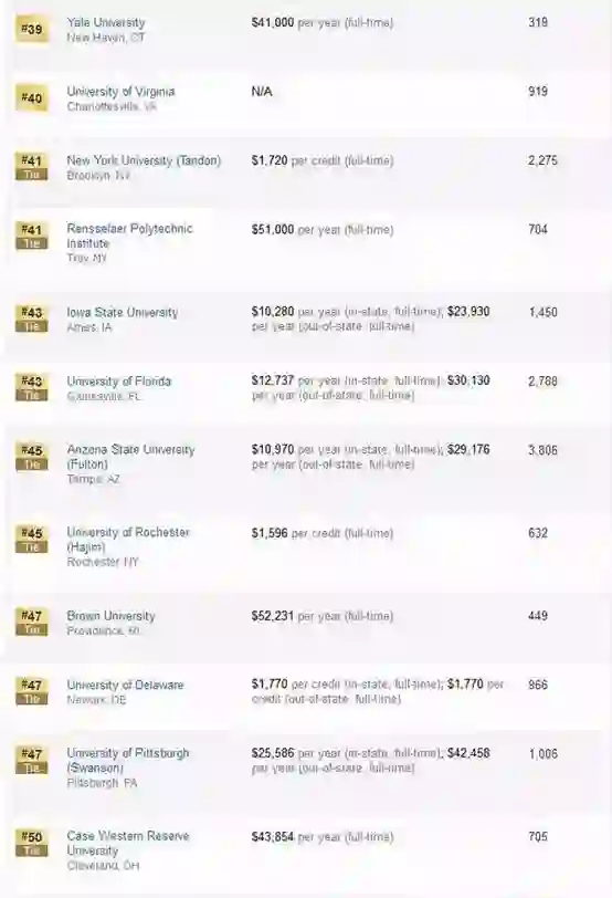 工程学院前50排名如下: