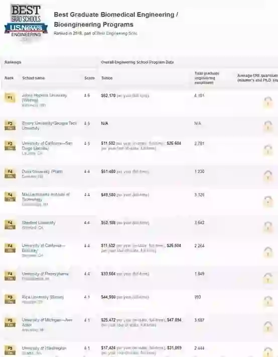 生物医学工程前10排名:
