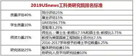 由于U.S.News的数据直接来自各大学的内部统计,真实性和可信性比较高,所以该排名一直是很多中国学生美研申请中最为关注的一个,其各科的排名依据侧重点略有不同,但总体依据相差无几,指标主要还是四大方面: