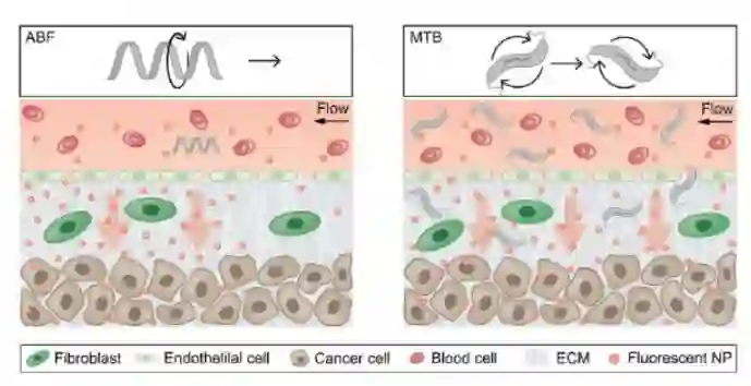 研究人员受到细菌的推进和运动方式的启发,打造出的磁性微型机器人有助于克服纳米粒子输药的最大障碍之一:如何让粒子离开血管并集聚在正确的位置。