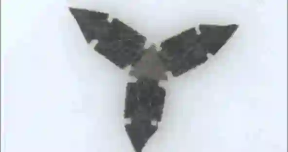 每个微型机器人都由几个扁平柔性材料的 “薄片” 组成,上面精确地排列着磁针。