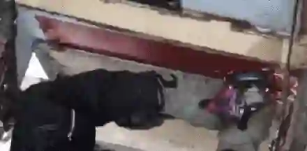 前面说过,他们的阳台是用一块薄薄的塑料板隔开的...