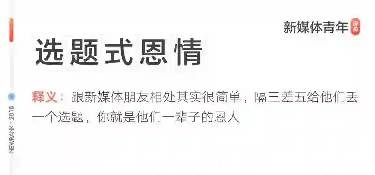 新媒体时代的青年如何欢度五四青年节?欢迎了解一下由新榜独家定制的《2018新媒体青年辞典》。友情提示,翻阅时请勿吃饭喝水。