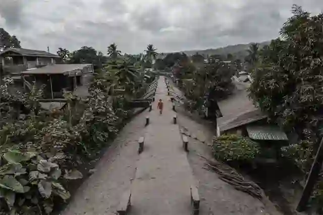 今年1月菲律宾马荣火山爆发后,周边地区大面积被火山灰覆盖,环境变得灰暗。乍一看,我们似乎是在看一幅黑白图像,但当你看到这个小身影色彩鲜艳的衣服时,这种虚实之间的感觉,为照片平添了一丝末日气息。