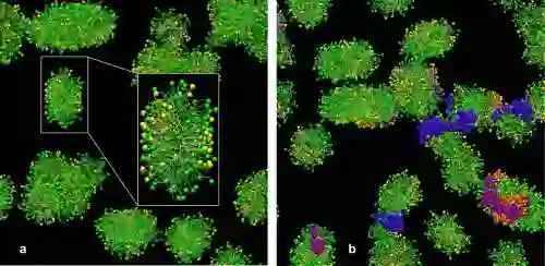 力学所研究团队采用粗粒化分子动力学模拟,研究了吸入纳米颗粒与肺泡液体中肺表面活性剂的交互作用,发现了具有不同物理化学性质的纳米颗粒在接触到肺表面活性剂后,均会吸附并形成由磷脂分子和活性剂蛋白分子组成的生物分子冕。分子冕的结构依赖于纳米颗粒表面的亲疏水性质,亲水颗粒形成双层冕结构而疏水颗粒形成单层冕结构;分子冕将为纳米颗粒提供一类物理化学屏障,使得纳米颗粒亲疏水性质趋同,且能增强纳米颗粒的生物识别。