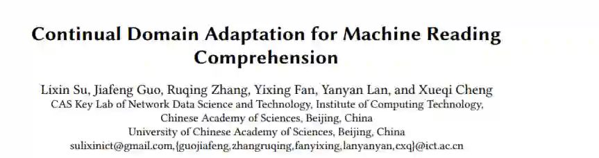 后台回复“CDA” 就可以获取《【CIKM2020】持续域自适应的机器阅读理解,Continual Domain Adaptation》专知下载链接