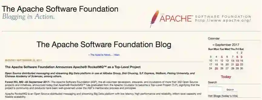 9月25日,Apache软件基金会官方宣布,阿里巴巴捐赠给Apache社区的开源项目RocketMQ从Apache社区正式毕业,成为Apache顶级项目(TLP)。Apache RocketMQ是国内首个非Hadoop生态体系的顶级项目,作为阿里巴巴在开源社区努力的最新成果,在国际舞台华丽绽放,引起全球开源社区的广泛关注和积极评价。