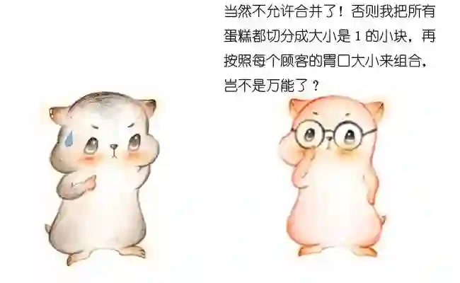 但是,若干块较小的蛋糕,不允许合并成一块大蛋糕,用来满足一个胃口较大的顾客: