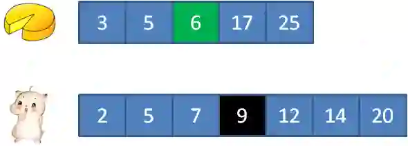 由于第二步验证成功,所以我们要在元素9右侧的区域,重新寻找中间元素。显然,这个中间元素是14: