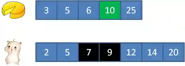 比如:输入cakes集合 {2,9};输入mouths集合 {5,4, 2,8}