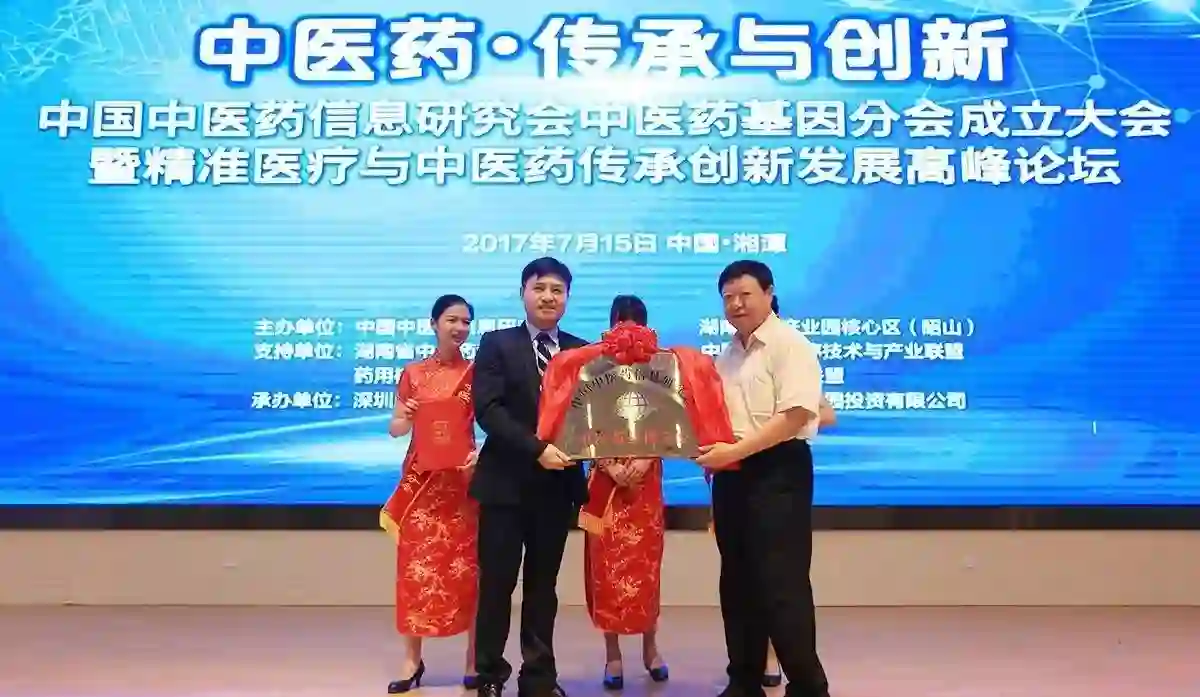2017年7月14-15日,由中国中医药信息研究会、湖南健康产业园核心园区(昭山)主办,深圳康昕瑞生物基因科技有限公司、湖南健康产业园投资有限公司承办,湖南省中医药和中西医结合学会、中国基因测序技术与产业联盟、药用植物产业技术创新联盟和首都创新大联盟作为支持单位的中国中医药信息研究会中医药基因分会成立大会暨精准医疗与中医药传承创新发展高峰论坛在湖南湘潭隆重举行。来自中国工程院、中国中医药信息研究会、中共湘潭市委、湘潭市人民政府、新华社世界问题研究中心、中国农业科学院、湖南省卫计委、湖南省商务厅等专家、学者、官员莅临大会现场,还有来自全国各地近400名中医药和生命健康领域的专家学者、优秀企业家代表、资深投资专家和媒体嘉宾参加了本次盛会,各方共谋中医药发展大计,共寻基因科学与中医药融合创新之路。本次活动的成功举办,标志着全国首个中医药与基因科学研究、开发、交流平台的正式成立,将为我国中医药和基因行业跨界融合、集群创新、合作共赢注入强大动力,为引领我国中医药传承创新发展,加快健康中国建设提供强大支撑。