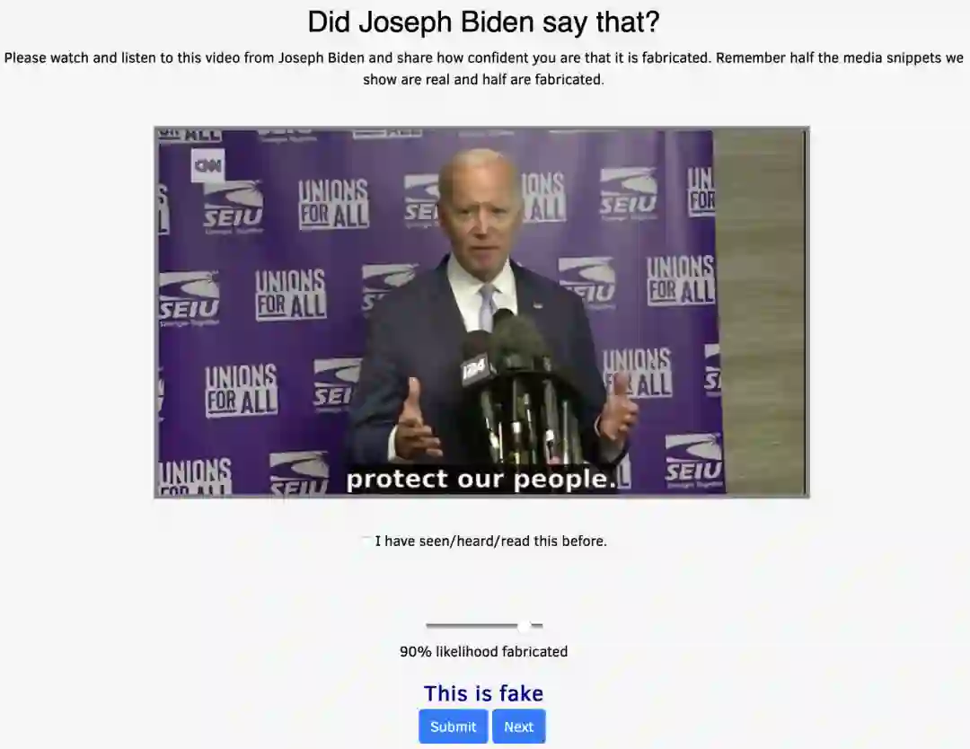 这与传播领域的旧观点相反,过往学界认为当同一版本的内容以视频而不是文本形式呈现时,人们会更容易被假消息欺骗。
