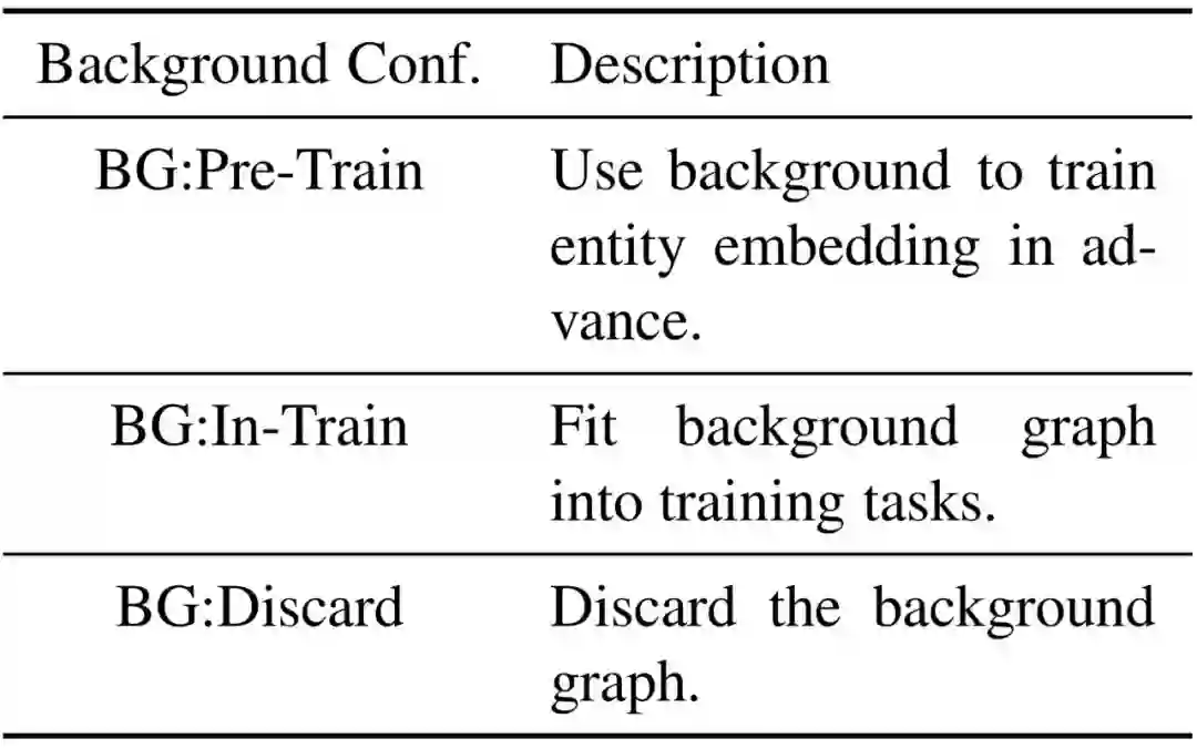 在实验阶段我们使用了NELL-One和Wiki-One,这两个数据集是在发表于MENLP-2018的One-Shot Relational Learning for Knowledge Graphs中提出,其中该文章提出的GMatching方法中需要使用一个不包含训练/验证/测试任务的关系的背景知识图谱(Background KG),但是我们提出的方法并不依赖于类似的背景知识图谱,所以我们对数据集进行了多种的不同处理,具体解释如下: