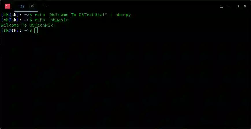 $ echo "Welcome To OSTechNix!" | pbcopy